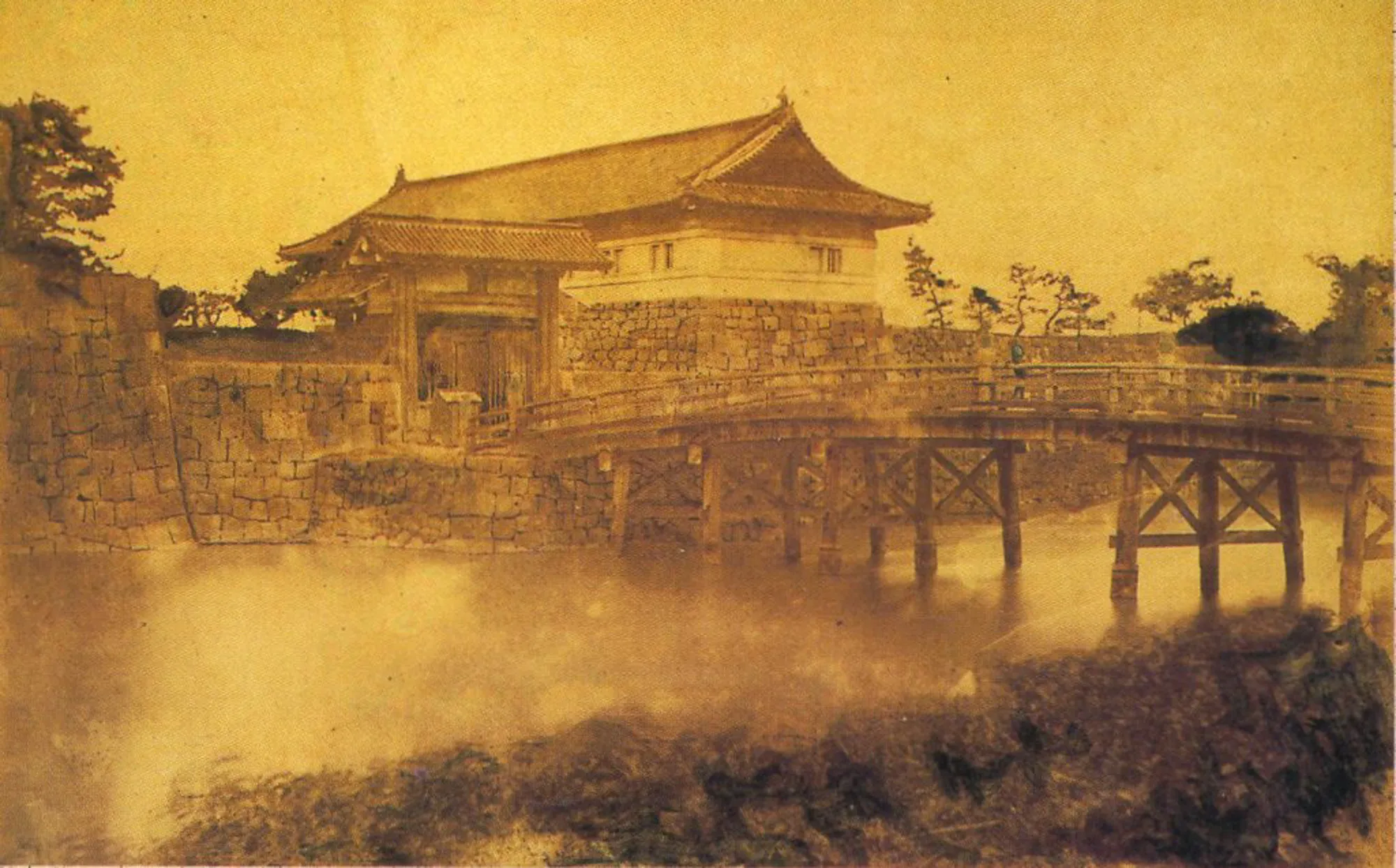 この時期のプリントには、紙に卵の白身(アルブミン)と硝酸銀を塗った「鶏卵紙」が使われました。セピア色の独特な光沢があり、明治時代の古写真は多くがこのタイプです。
